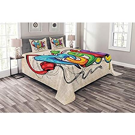 春夏新作 全国送料無料 海外から直輸入 Ambesonne ミュージックベッドスプレッド グラフィティスタイルのレタリングヘッドホンのイラスト ヒップホップテーマ ベージュのレンガ 装飾キル シーツ カバー Www Reinnec Cl